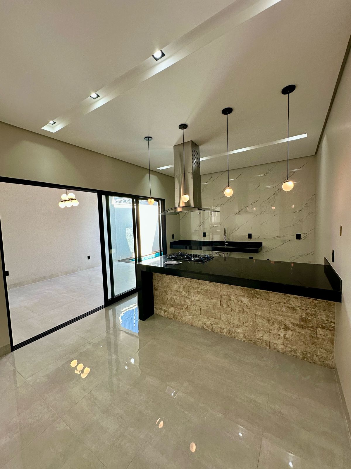 ▪️Cozinha com península integrada a área gourmet;